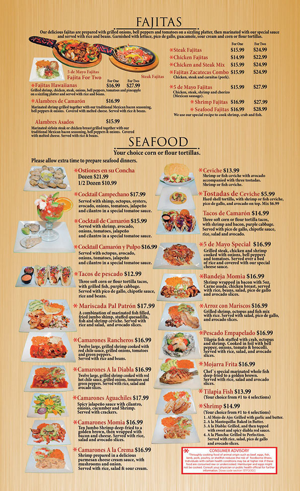We prepare great Mexican food with authentic flavors. At 5 de Mayo Mexican Restaurant